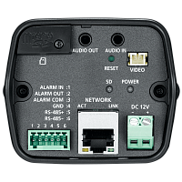 SNZ-6320P использует для компрессии кодеки H.264 и MJPEG. Поддерживает ONVIF Profile S. Интерфейсы: порт для ресивера RS-485, тревожный вход/выход (1/1), аудиовход/выход (1/1), видеовыход CVBS (для тест-монитора), слот для карт microSD/SDHC/SDXC емкостью до 64 Гбайт. Локальная запись предотвращает потерю данных в случае дисконнекта и позволяет применять камеру в бессерверной системе видеонаблюдения. Питание — 12 В DC, PoE, максимальная потребляемая мощность — 10 Вт. Габариты: 72.0×59.9×135.4 мм. Вес — 540 г.