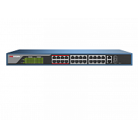 Неуправляемый PoE-коммутатор Hikvision DS-3E0326P-E (B) оснащен 24 FE-портами RJ-45 с поддержкой PoE, двумя гигабитными комбинированными портами с разъемами: RJ-45 — для соединения по Ethernet кабелю, SFP — по волоконно-оптическому кабелю. Выделяет до 30 Вт на РоЕ-порт при общем бюджете РоЕ — 370 Вт. При превышении нагрузки распределяет РоЕ на приоритетные порты 1 ~ 8. В режиме расширения расстояние передачи достигает 250 м (для портов 17 ~ 24).