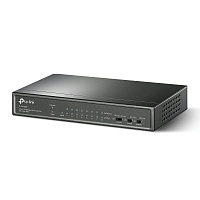TL-SF1009P при общем бюджете PoE 65 Вт подает на один PoE-порт до 30 Вт. Оснащен LED-индикацией питания, состояния РоЕ, PoE MAX, Link/Act. Поставляется с адаптером питания (53.5 В DC, 1.31 А). Потребляемая мощность: с подключенными устройствами — до 77.08 Вт, без нагрузки — 3.6 Вт. Безвентиляторный дизайн, металлический корпус. Установка — настольная, возможен настенный монтаж на крепление. Рабочие температуры — 0 °C... +40 °C. Размер — 171×98×27 мм.