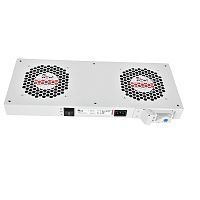 Вентиляторный модуль Rem R-FAN-2T для телекоммуникационных шкафов ШРН, ШРН-Э, ШРН-М, ШТК-М, ШТК-ПМ, ШТК-Э, ШТК-С, ШТВ и EMS ссостоит из двух осевых односкоростных вентиляторов и терморегулятора.