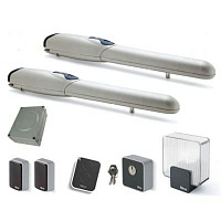 Комплект Nice WINGO5024KCE для автоматизации распашных ворот со створками шириной до 3.5 м, весом до 500 кг состоит из двух электромеханических приводов WG5024, электронного блока управления MC424L, фотоэлемента EPM, пульта ДУ FLO2RE, сигнальной лампы ELDC, замкового переключателя EKS.