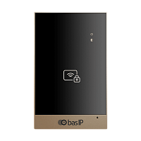 Терминал доступа BAS-IP CR-02BD gold оснащен считывателем EM-Marin, Mifare, Bluetooth, NFC, контроллером, индикаторами питания и отпирания двери, интерфейсами RJ-45, RS-485 и Wiegand, динамиком (регулировка громкости).