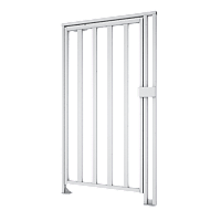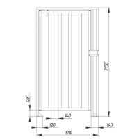 Рабочие температуры — -30 ºС… +40 ºС, влажность — до 80 % (при 25 ºС). Размер без замка и доводчика (Ш×В×Г) — 1210×2150×120 мм, с замком и доводчиком — 1210×2150×377 мм. Вес — 79 кг. Установка — между секциями ограждения.