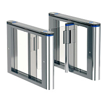 Тумба распашного турникета Блокпост РСП 700 оборудована створками шириной 280 мм. При установке двух тумб минимальная ширина зоны прохода составляет 600 мм. Движение левой и правой шторки независимо — распахивание в одну или две стороны. При поступлении сигнала тревоги контроллер блокирует створки в положении, перпендикулярном тумбе, при поступлении сигнала о пожарной опасности — в положении вдоль тумбы, освобождая проход для экстренной эвакуации. Функцию «Антипаника» активирует контроллер или сигнал пульта управления — в комплекте два пульта: кабельный и инфракрасный дистанционный.