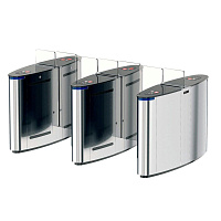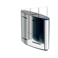 Тумба скоростного турникета Блокпост СКП 1200 с выдвигающимися влево и вправо створками шириной 350 мм поддерживает открытие прохода по сигналу пульта управления или по карте. В стандартную комплектацию входят два считывателя HID и EM-Marin. Ширина зоны прохода между двумя тумбами составляет 650 мм.