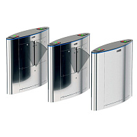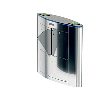 Поддерживает одно- и двунаправленный проход, открытие створок по сигналу пульта управления или по карте. В стандартную комплектацию входят два электронных считывателя карт HID и EM-Marin.