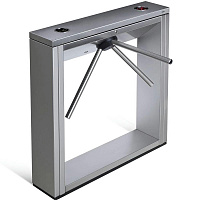 Нормально-закрытый тумбовый турникет-трипод PERCO TTD-03.2S с корпусом и крышкой, выполненными из шлифованной нержавеющей стали, предназначен для работы в помещении, поставляется с электронной платой, поддерживает проход в двух направлениях, механические планки «антипаника»(планки выбирают при заказе).